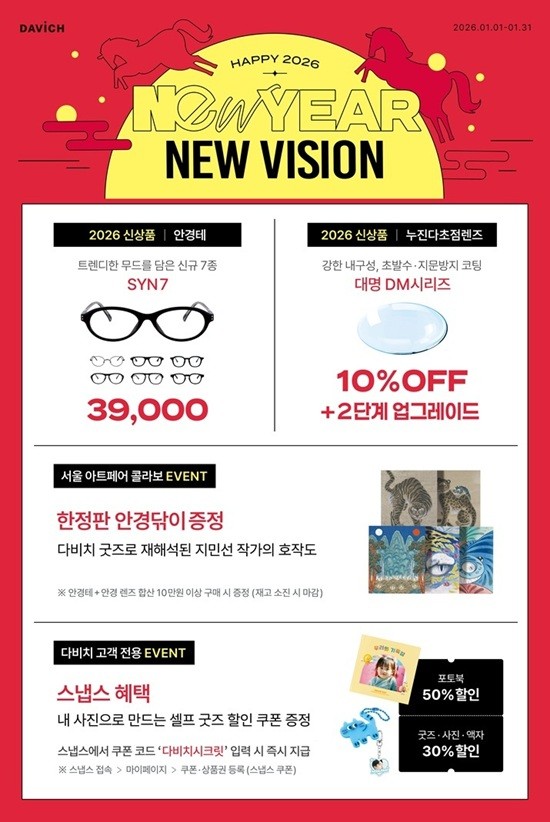 안경체인 프랜차이즈 브랜드인 다비치안경이 2026년 새해를 맞아 ‘붉은 말의 해’ 기념 프로모션을 진행한다.