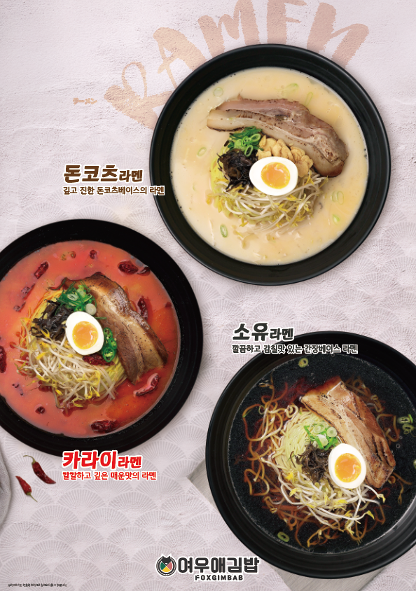 여우애김밥, 돈코츠·소유·카라이 라멘 신메뉴 선보여