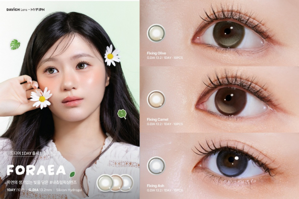 다비치렌즈와 마이피픈의 협업 제품인 한달용 컬러렌즈 ‘포레아(FORAEA)’는 축 고정 렌즈 설계를 적용해 착용 시 컬러 패턴의 안정성을 높인 것이 특징이다.