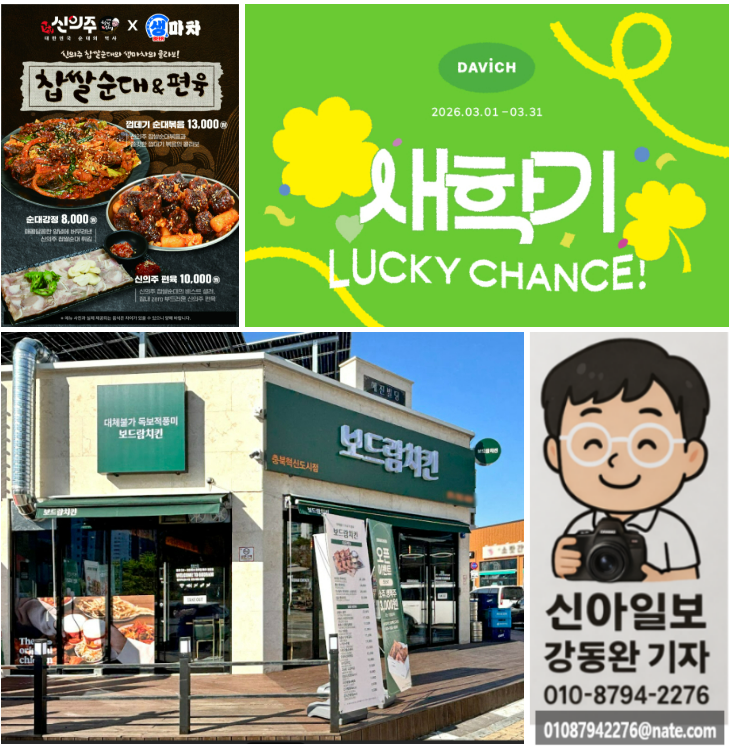 | 추억의 맛에 트렌디함을 더하다…보드람치킨, 충북혁신도시 '치맥' 명소로 [ 신아일보 강동완 기자 ] (0) | 2026.03.08 |