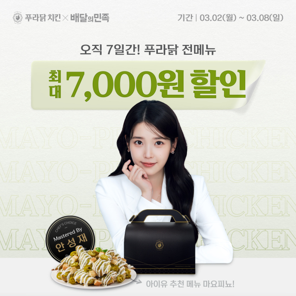 프로모션은 3월 8일까지 배달의민족 애플리케이션을 통해 운영되며, 푸라닭 치킨 전 메뉴에 적용된다.