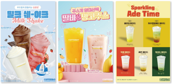 주스는 딸기 바나나 주스와 망고 주스 2종이며, 에이드는 라임과 민트를 조합한 쿨라임 에이드가 추가됐다.